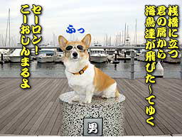 サスケくんとかりんちゃんは先に公園で遊んでいたわ Dogglesおまたせ〜 早速試着してみたけど気に入って貰えたみたいね お父さんのいっちゃんとお母さんのキョロちゃんも大喜び いっちゃんはお家に帰って自分のHPにDogglesのページを作っちゃたのよ スゴ〜イ!^^; フリスビーをしたり公園の枝を食べたりしながら (良いこのWANちゃんは真似しちゃダメよ) 一時間以上も遊んじゃったの サスケくんにかりんちゃん ありがとね〜 また遊ぼうね ナンか一時間以上も遊んでた割には写真が少ないって? それに今回やけに字が多い? バレた? 実は写真イッパイ撮ったのに全部消しちゃったんです (T_T) 何とか一枚だけ残ってたんでとりあえず作って見ました ダメ? やっぱし? (ト書き:プロジェクトX風に) そして ももち商会の営業車は一路横浜ベイサイドマリーナに向かった |